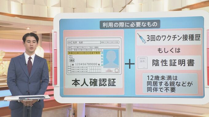 利用する際には、本人確認証と3回の新型コロナウイルスワクチンの接種歴、もしくは陰性証明を提示する必要があります。ただ12歳未満の子どもは同居する親などが同伴する場合、これらの証明は不要ということです。本人確認書に関しては必要ということになります。