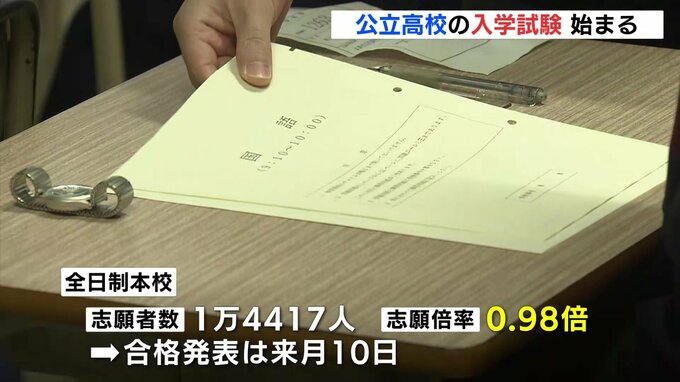 ことしの全日制本校の志願者数は、1万4417人。志願倍率は、0.98倍と1倍を下回っています。
