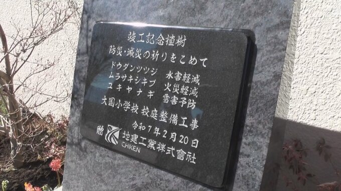 今回は水害の際、建物の被害を軽減する「ドウダンツツジ」、火災の延焼を防ぐ「ムラサキシキブ」、雪による倒木を予防する「ユキヤナギ」の3本が贈られ、大国小学校は「災害への備えを学ぶきっかけにしたい」と話しています。