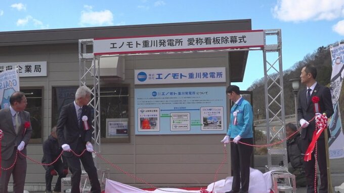 26日は関係者が出席して除幕式が開かれ、「エノモト重川発電所」の愛称看板がお披露目されました。