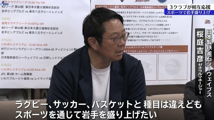 日本製鉄釜石シーウェイブス、いわてグルージャ盛岡、岩手ビッグブルズの3つのクラブチームが相互に応援することで岩手を盛り上げようというプロジェクトが始動します。