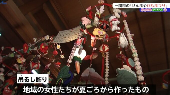 こちらの布でできた「吊るし飾り」は地域の女性たちが毎年夏ごろから丁寧に丹精を込めて作っています。
