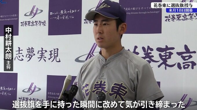 「選抜旗を手に持った瞬間に改めて気が引き締まった。岩手から日本一を実現できるように目標を持ちながら勝ちを積み重ねていければ」