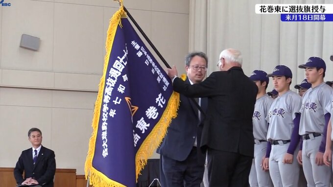 3月開幕の春のセンバツ甲子園に出場する花巻東高校野球部に、26日入場行進で掲げる選抜旗が授与されました。