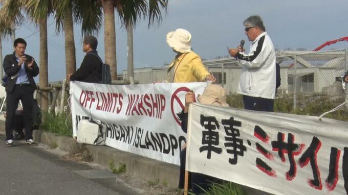 一方、港周辺には寄港に反対する市民らが集まり、抗議する姿もありました。