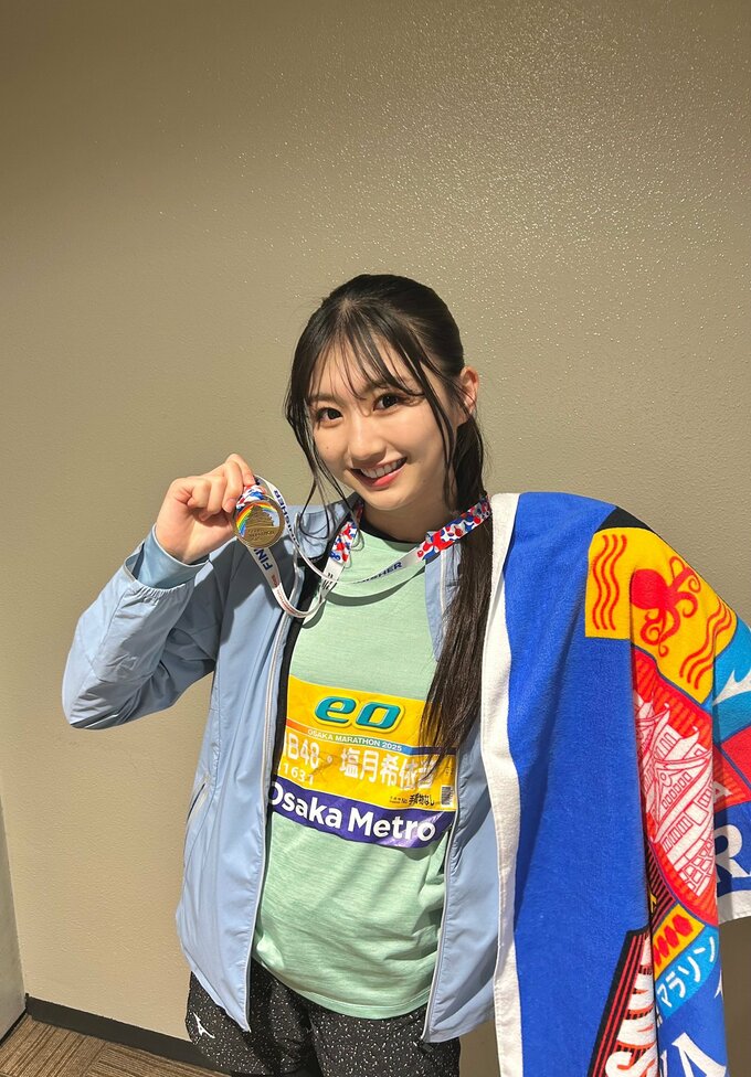 NMB48のメンバー・塩月希依音さんが自身のXで「大阪マラソン」に初挑戦し、完走したことを報告しました。