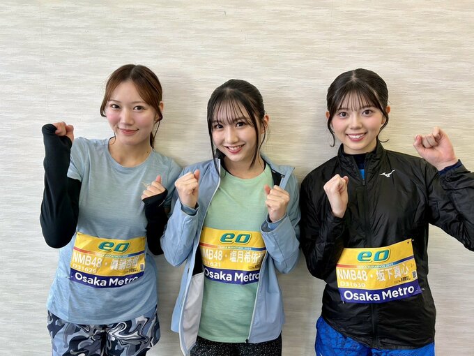 塩月さんは「#大阪マラソン2025ありがとうございました」と、感謝の気持ちとともに、当日一緒に奮闘したNMB48のメンバー眞鍋杏樹さん、坂下真心さんとの3ショット写真を投稿。