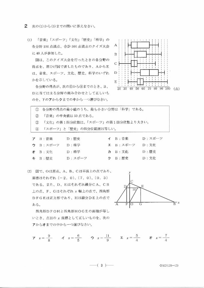 3. 愛知県公立高校入試2025「数学」の試験問題・解答「6+10÷(-2)の答えは?」など全問掲載
