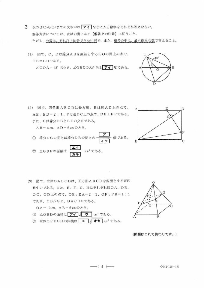 愛知県公立高校入試2025「数学」の試験問題・解答「6+10÷(-2)の答えは?」など全問掲載