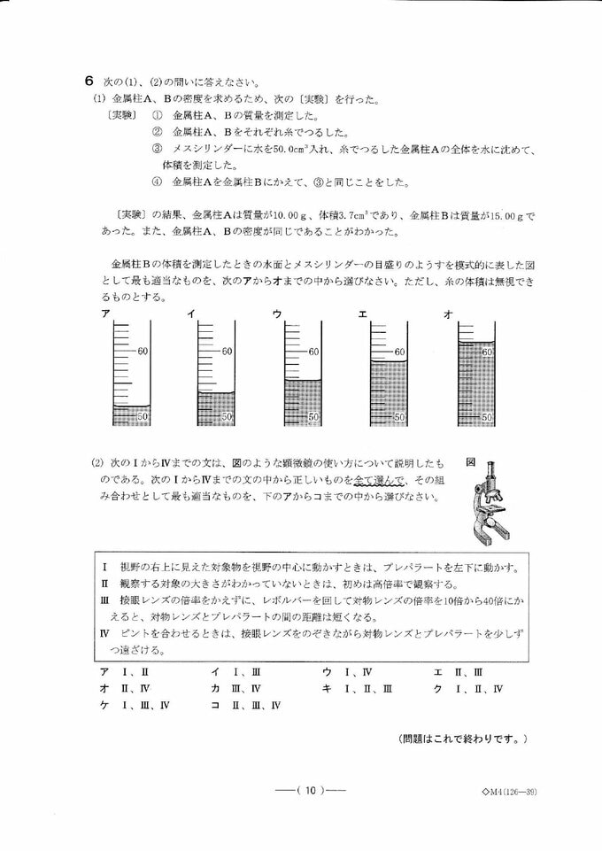愛知県公立高校入試2025「理科」の試験問題・解答「ガスバーナーの火を消す前にガラス管をビーカーから取り出した理由は」など全問掲載