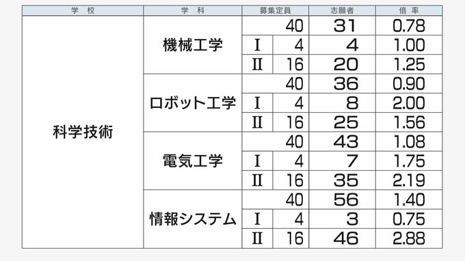 【全校全学科掲載】静岡県公立高校入試2025 「確定」志願倍率 静岡1.13倍 浜松北普通1.25倍 磐田南理数1.95倍、韮山理数1.90倍 全体平均は1.06倍 【令和7年度高校入試 変更後出願状況】 静岡放送 2025年2月27日(木) 19:15 国内 【気になる志望校の倍率は?全日制:中部】 ◇清水東、清水西、清水南、静岡市立清水桜が丘、静岡 ◇静岡城北、静岡東、静岡西、駿河総合 ◇静岡農、科学技術 ◇静岡商、静岡市立、焼津中央、焼津水産 ◇清流館、藤枝東、藤枝西、藤枝北、島田、島田工 ◇島田商、川根、榛原、相良
