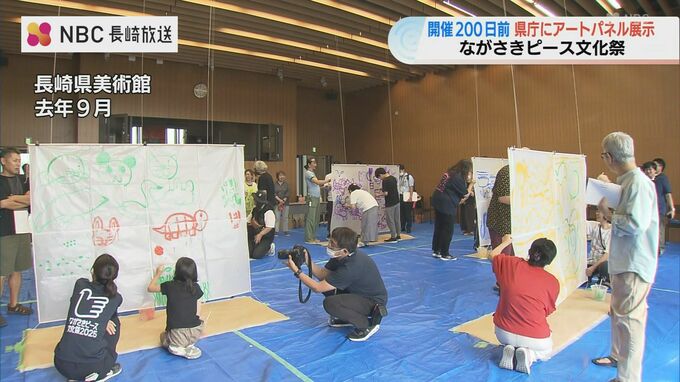 国内最大規模の文化の祭典「ながさきピース文化祭」の開催まで200日となったきょう、過去のプレイベントで製作された作品などの展示が長崎県庁で始まりました。