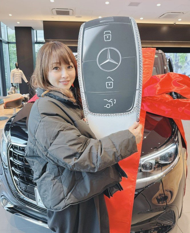 続けて、「先日、新しい車を購入しました!」「メルセデスベンツのショールームで納車式をして頂きました!」と綴ると、写真をアップ。