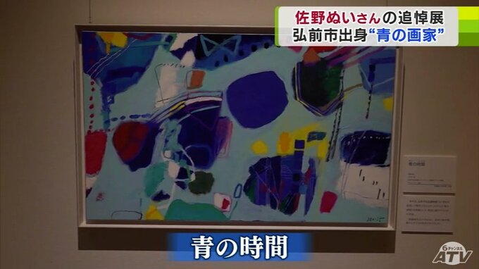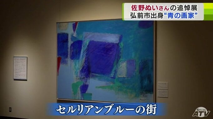 弘前市名誉市民の洋画家で、青色を基調とした抽象画を描き、“青の画家”と呼ばれた佐野ぬいさんを追悼する展覧会が青森県弘前市の「弘前市立博物館」で開かれています。