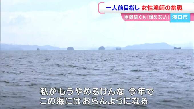 岡山県浅口市の寄島漁港に、ただ一人の女性漁師がいます。漁師歴はたったの3年。技術不足に体格の差、そして師匠の引退・・・多くの困難に直面しながらも「一人前になりたい」と挑み続けるその姿に密着しました。