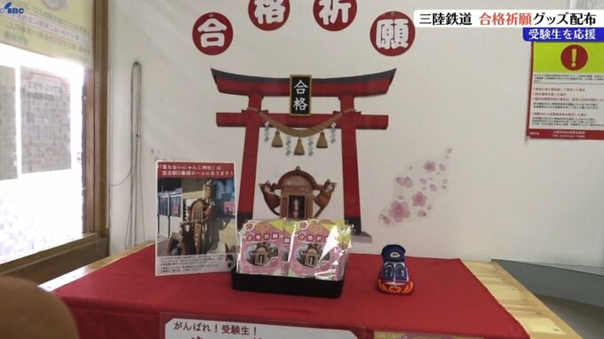 三陸鉄道社員による受験生応援の思いが込められたこの時期恒例の取り組みで、訪れた人たちは、家族や自分のためにと早速合格祈願グッズを手にとっていました。