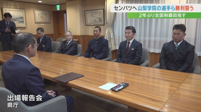 3月開幕するセンバツ高校野球で2年ぶりの全国制覇を目指す山梨学院高校の選手らが県庁で勝利を誓いました。