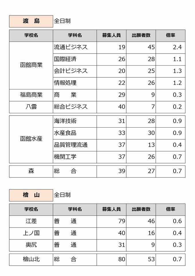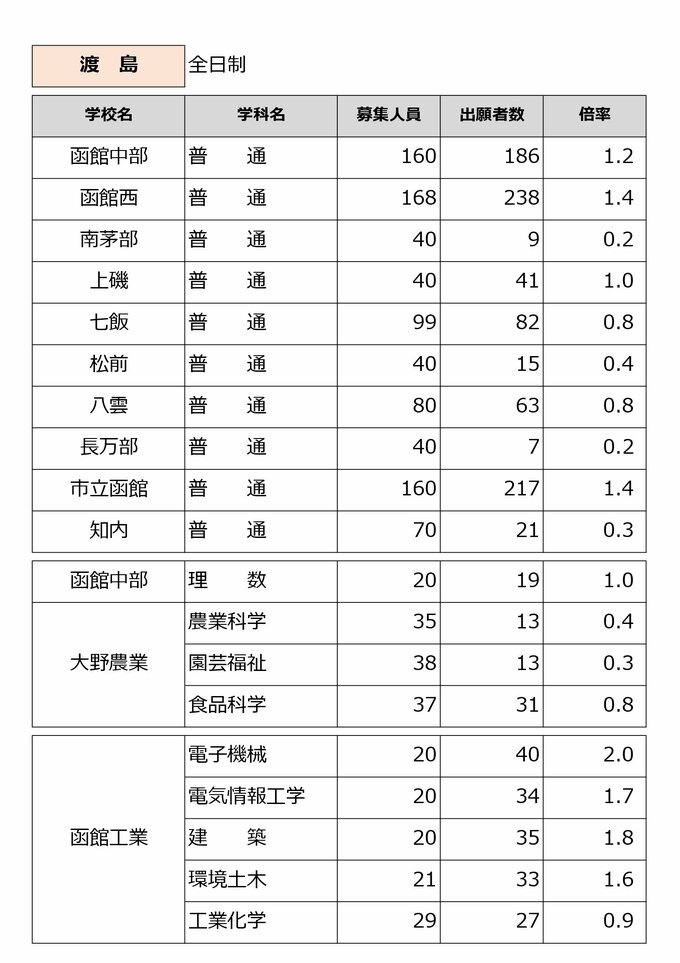 北海道公立高校入試2025年【志願倍率確定】札幌南1.3倍 札幌西1.4倍 札幌東1.6倍 札幌北1.2倍 全日制普通科で最高は市立札幌清田のグローバル1.9倍 試験は3月4日《全日・定時制全校掲載》 北海道放送 2025年3月3日(月) 13:09 国内 【全日制】後志・渡島・檜山