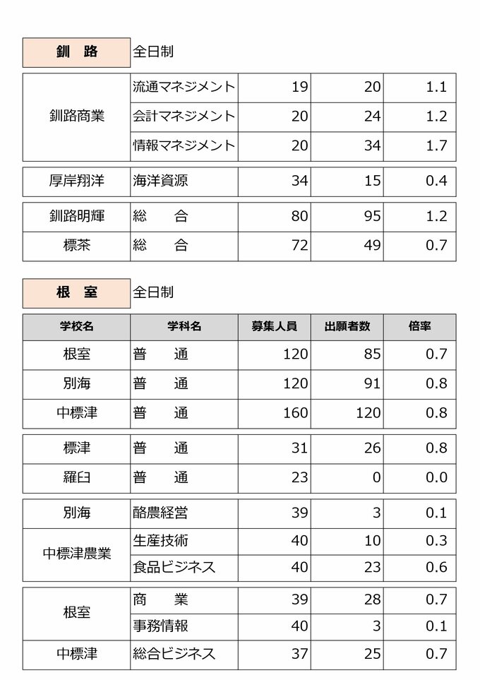 北海道公立高校入試2025年【志願倍率確定】札幌南1.3倍 札幌西1.4倍 札幌東1.6倍 札幌北1.2倍 全日制普通科で最高は市立札幌清田のグローバル1.9倍 試験は3月4日《全日・定時制全校掲載》 北海道放送 2025年3月3日(月) 13:09 国内 【全日制】釧路・根室