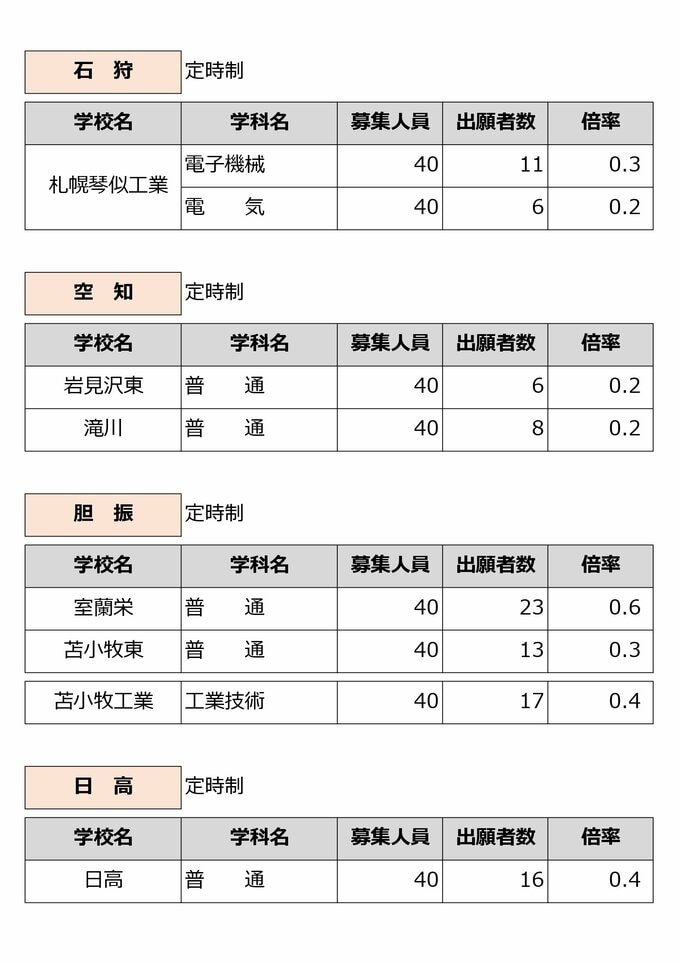 北海道公立高校入試2025年【志願倍率確定】札幌南1.3倍 札幌西1.4倍 札幌東1.6倍 札幌北1.2倍 全日制普通科で最高は市立札幌清田のグローバル1.9倍 試験は3月4日《全日・定時制全校掲載》 北海道放送 2025年3月3日(月) 13:09 国内 【定時制】札幌市・石狩・空知・胆振・日高