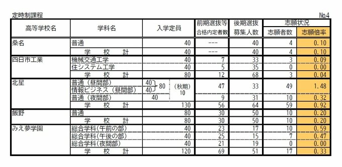 三重県立高校入試2025 後期選抜の志願倍率・出願状況 普通科は桑名1.03倍、四日市0.74倍、津1.13倍、伊勢0.87倍