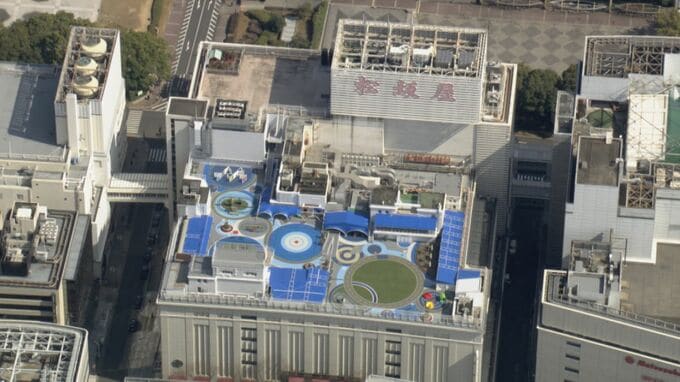 きのう上空から撮影した映像に映っていたのは空からも鮮やかに見える屋上遊園。リニューアルされ、とてもカラフルになった印象です。