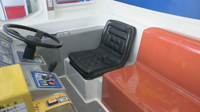 座席部分に亀裂が入っていたバスの乗り物も修理されキレイになりました。