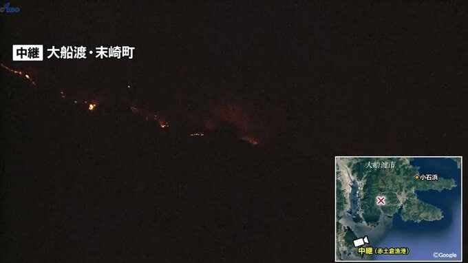 ここで大船渡市の山林火災の現場から中継です。井丸キャスターです。