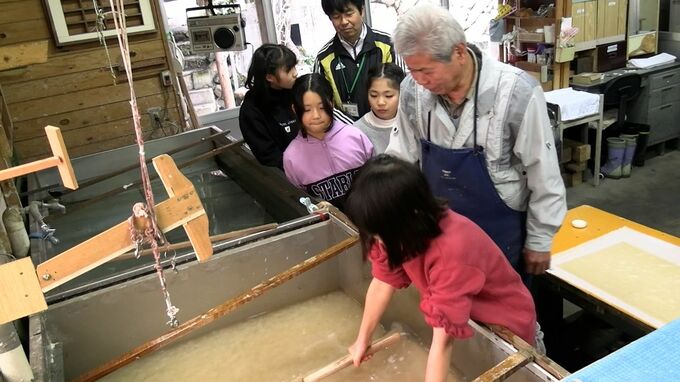 岡山県真庭市の小学生が地元の和紙工房で紙すきを体験しました。手作りした和紙でオリジナルのしおりを製作するといいます。