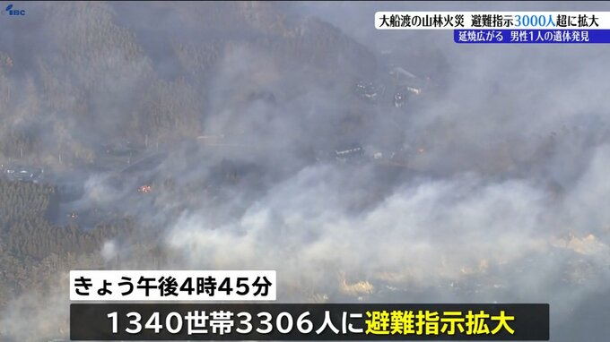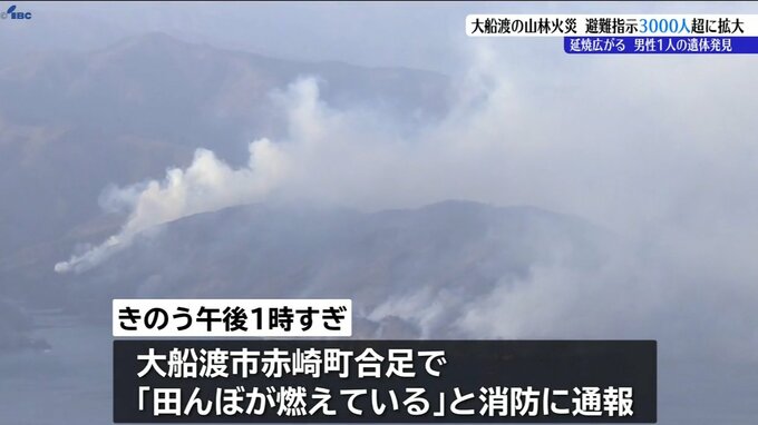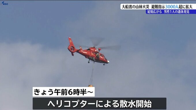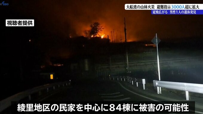 岩手県大船渡市で発生した山林火災は27日も消火活動が続けられています。山林火災の現場からは男性1人の遺体が見つかりました。住宅などの建物の延焼は80棟以上に上っています。