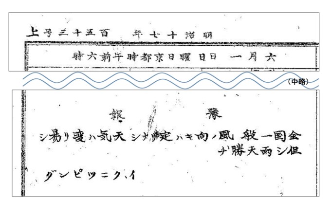 また1884年6月1日には毎日3回の全国の天気予報の発表が開始されたのです。最初の天気予報は「全国一般風ノ向キハ定リナシ天気ハ変リ易シ但シ雨天勝チ」という日本全国の予想をたった一つの文で表現するもので東京の派出所などに掲示されました。当時は収集した気象データを基に大まかな予報でしたが、自然災害から国民を守るための重要な一歩でした。