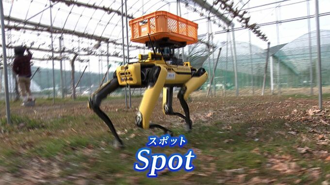 高知工科大学が農業の現場での活用を進めている四足歩行の犬型ロボット“Spot”です。人手不足に悩む柚子農家の収穫作業を支援しようと約1年半前からプログラムを開発。指示を受けたロボットが収穫した作物をトラックまで運び再び収穫場所へ戻るまでのシミュレーションを行いました。