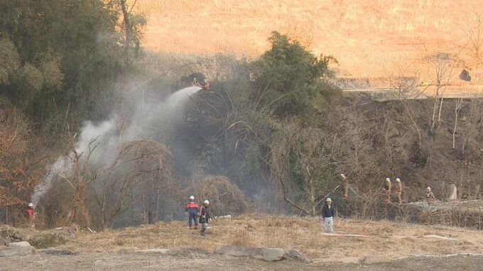 一方きょう午後3時半ごろ甲斐市亀沢で「畑で燃やしていた火が竹林に広がった」と通報があり、およそ1時間半でほぼ消し止められました。
