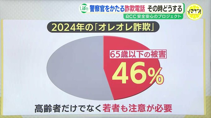 2024年の「オレオレ詐欺」の被害の割合は65歳以下の人が46%もいます。半数近くが65歳以下と言う事で、被害に遭いやすいのは高齢者と思われがちですが若者も注意が必要になってきます。