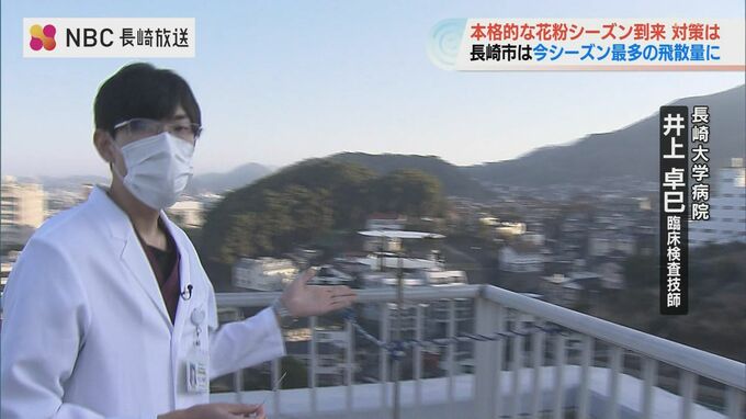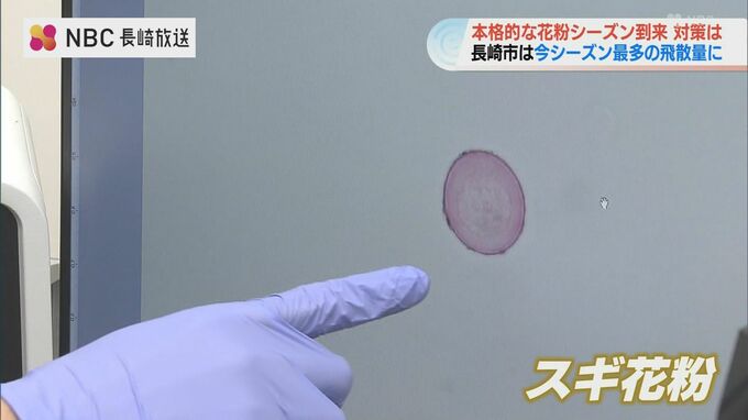 長崎県内の花粉の飛散量が今週に入り徐々に増加していて長崎市では27日朝、今シーズン最も多いスギ花粉の飛散が確認されました。