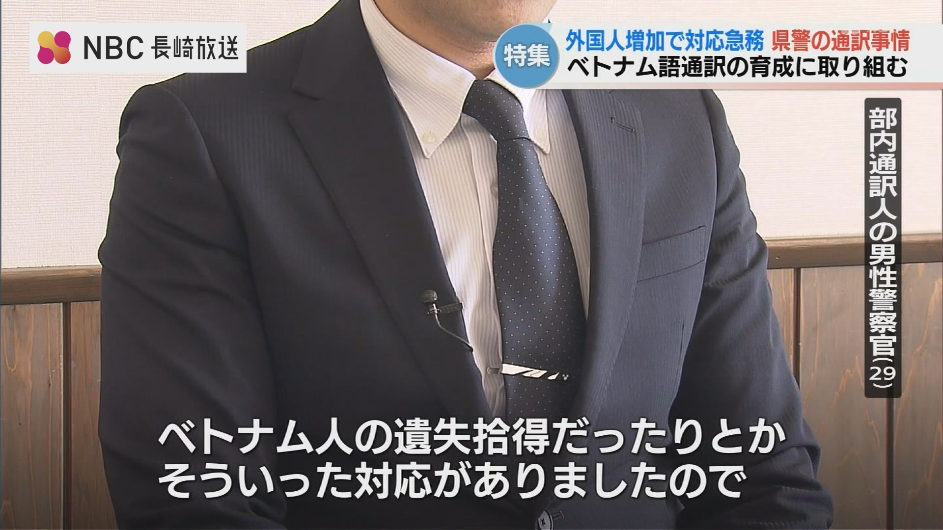 現在、長崎県警には警察官通訳90人、民間委託の通訳72人が在籍。しかし、県警のベトナム語通訳は主要言語と比べて少なく、育成が急がれる状況です。