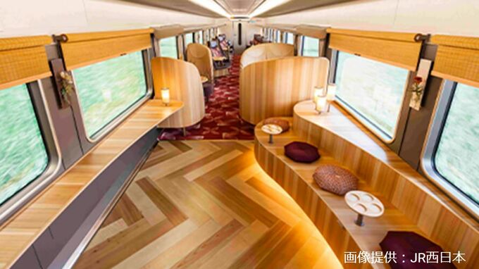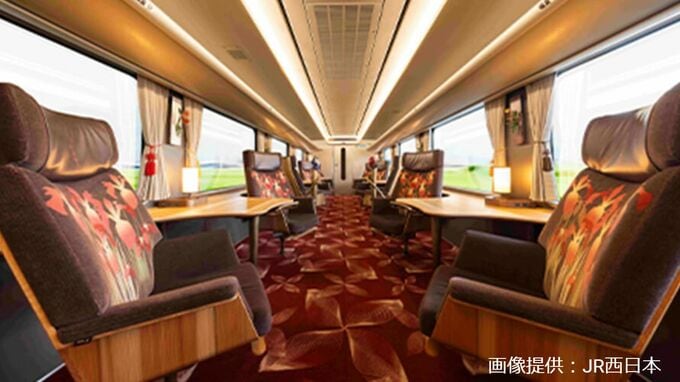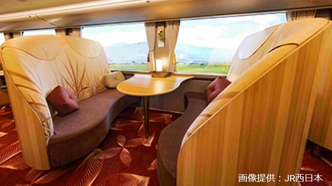 中にはゆったりとくつろげるボックスシートも。窓もワイドで、まさに「動く貴賓室」です【画像⑤】。
