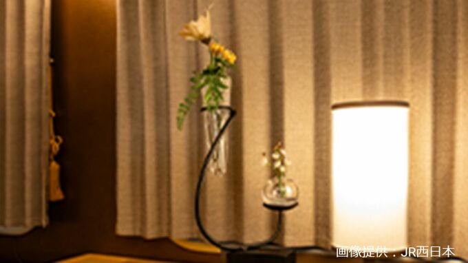 さらに細部にも目を遣ると...「とっておきの逸品」であふれています。【画像⑧】は、1号車に設置された「出雲たたら製鉄一輪挿し」。天平時代から続く出雲の鉄文明・たたら製鉄を活用したものだそうです。