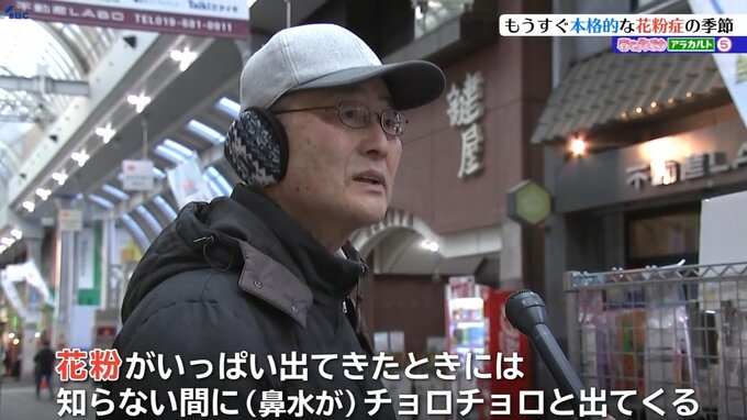 「花粉がいっぱい出てきた時には、知らない間に(鼻水が)チョロチョロと出てく