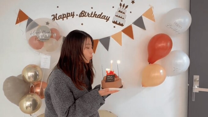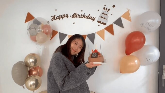 2月13日生まれの有村さんは、誕生日を祝う装飾を前で、バースデー・ケーキを持ち、爽やかな笑顔を見せる自身の写真を投稿。「2月生まれの水瓶座のB型です」と、改めて自己紹介。