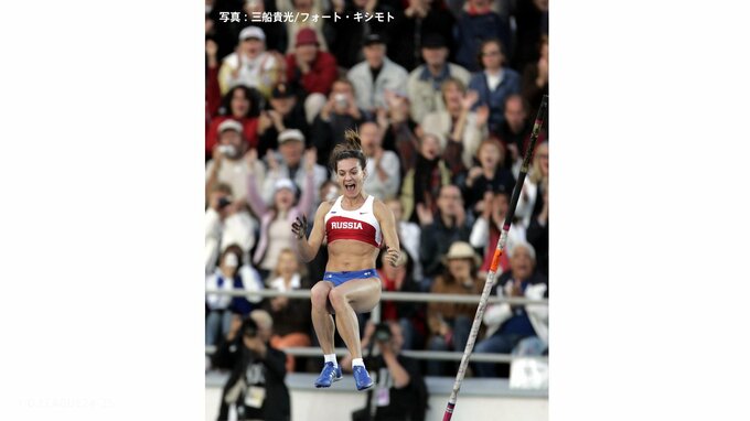 4m50を1回で成功したイシンバエワは4m60、4m70とすべてノーミスでクリアしていき、次の4m75をパスしました。ライバルのM・ピクレ(ポーランド)がその高さを失敗して4m60に終わった時点で、イシンバエワの金メダルが確定したのです。ここからは世界新記録への挑戦となりました。