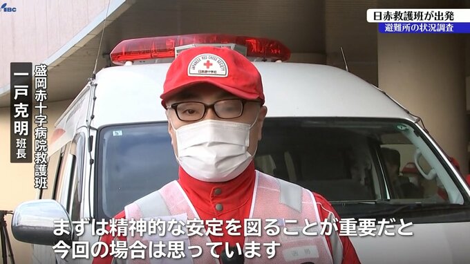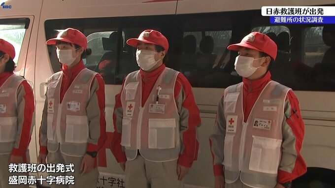 救護班は28日に1日かけていわて感染症制御支援チームや石巻赤十字病院の救護班と手分けして避難所を回り、体調不良者の有無や心のケアのニーズ、衛生環境について調べ今後の医療的支援の必要性を検討します。