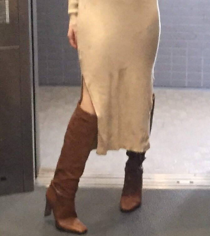 何が衝撃的だったかというと・・・まず私が大学生だった2010年頃とは明らかに違う素材感(柔らかい!)。そして歩きやすいヒールの高さ(今は歩きやすい3cm程度が豊富、さらに太いヒールが流行ど真ん中)。そして変わっていないのは、ロングブーツならではの暖かさ。