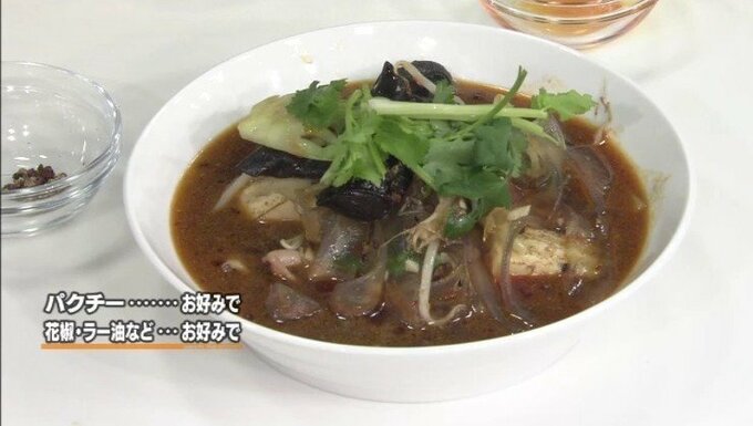 9.器に移し、お好みでパクチーや追加の花椒・ラー油をかけて完成!