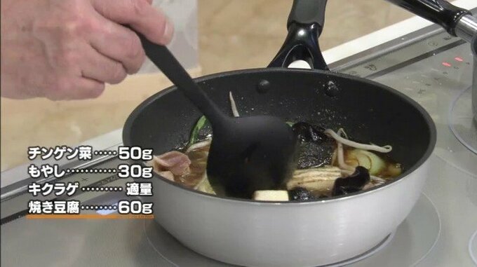 7.チンゲン菜・もやし・キクラゲ・焼き豆腐を加える。