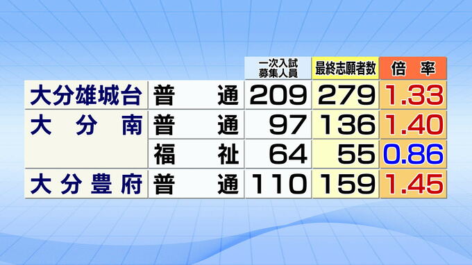 大分商業、芸術緑丘、大分西、大分鶴崎、鶴崎工業の志願倍率