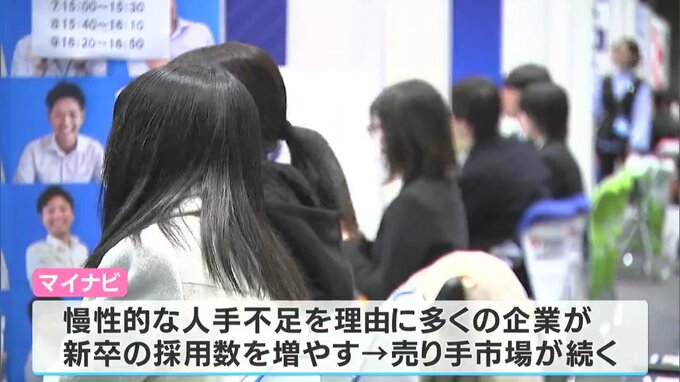 主催したマイナビによりますと、今年も人手不足を理由に多くの企業が新卒の採用数を増やしていて、学生にとっては有利な「売り手市場」が続いています。