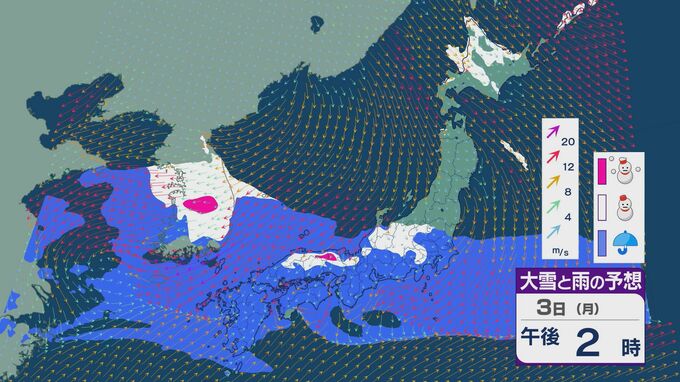 前線が西日本から東日本にのび2日以降は雨脚強まる天気に 東京など関東では4日にかけ雪が降るおそれ 雨・雪と風シミュレーション 北陸放送 2025年3月1日(土) 19:19 国内 前線に暖かく湿った空気が流れ込み、2日以降は西日本から東日本にかけて雨が降るでしょう。2日は西日本を中心に雨が降る見込みです 3日は、前線が東がのびることにともない九州から東海にかけて雨が降るでしょう。 西日本や東日本の日本海側では、北よりの風の影響も受け山地を中心に雪が降るところもありそうです。