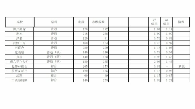 また、総合学科では市須磨翔風で1.82倍、太子で1.76倍、明石南で1.19倍、淡路で1.15倍、須磨友が丘で1.13倍などでした。