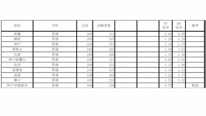 兵庫県内の公立高等学校2025年度の一般入試の出願が締め切られ、兵庫県教育委員会は倍率などの出願状況(2月27日時点)を発表しました。
